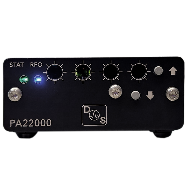 The new wideband PA22000 provides a compact and affordable way to amplify signals from 5-22GHz for a variety of Ku-band applications. Simple USB-C control makes this device much faster to integrate, and more flexible than traditional multi-voltage lab-supply powered devices. All negative voltage generation, gate control biasing, current limiting, temperature monitoring, and voltage detection are done internally automatically. The updated Rev7 version is powered directly from USB-C, no high voltage input required. Gain is adjustable from 0 to +30dB with control software or front buttons!